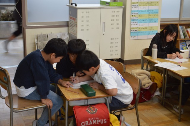 最後の授業は、「徳川家康と名古屋城について」というテーマでした。名古屋城に施された守りの工夫や家康の戦略などを写真資料を基に学ぶことができました。授業の最後には、家康が名古屋城を築城するにあたり、清洲越しを行ったことを教えていただきました。