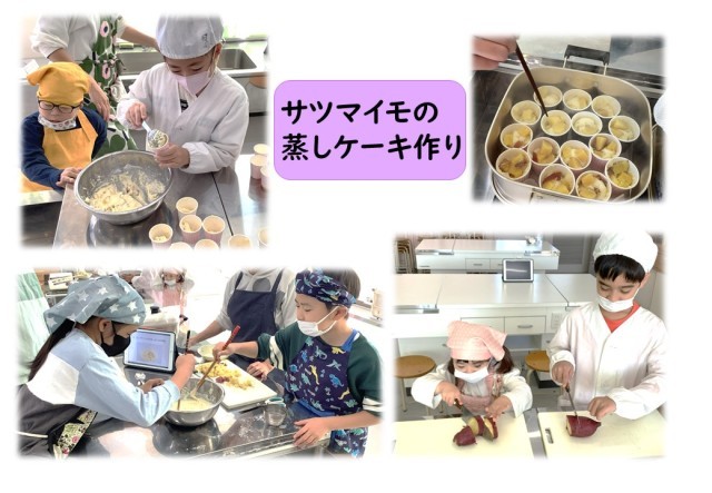 3・4・5組の児童がサツマイモの蒸しケーキ作りに挑戦しました。