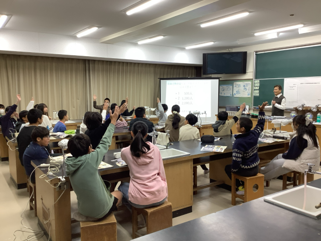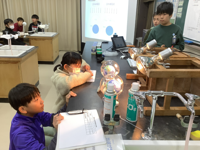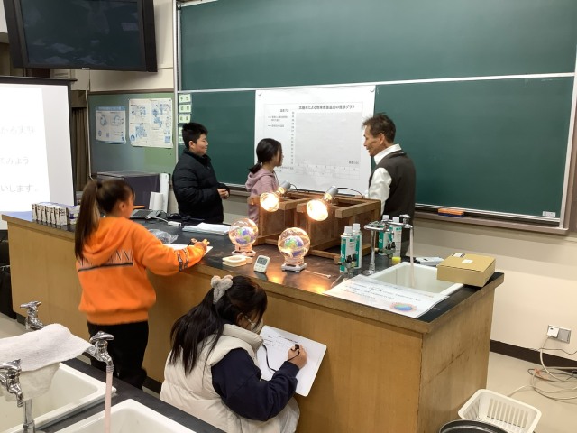 地球温暖化が自然や生活に与える影響やどのような仕組みで起こっているのかなどを学びました。途中で実験も行い、二酸化炭素の温室効果や電球の種類によって使われる電力に差ができることなどを確認することができました。最後には、地球温暖化対策として自分たちができることを考えました。今回学んだことをこれからの生活に活かしてほしいと思います。