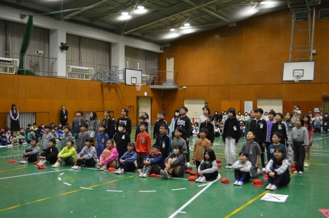 1/20~1/23は大なわ週間でした。朝の星の子タイムに縦割り班ごとに大なわ跳びに取り組み、得意な子も苦手な子も協力して跳びました。そして、1/23は大なわとび集会を行いました。どの縦割り班も最高記録を目指して全学年で協力し、一生懸命跳ぶ姿が見られました。練習よりもたくさん跳べた班が多く、100回を超える班もあり、一人一人が全力で取り組むことができた大なわ集会でした。