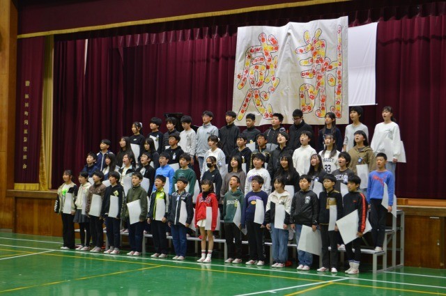 最後に、児童会役員から、1年間の活動報告と、各学級のまとめの動画の紹介がありました。それぞれの子どもが、それぞれの目標に向かってがんばった1年だったようです。自分のがんばりと成長を、そして、友達のがんばりと成長を、しっかりと認められるといいですね。