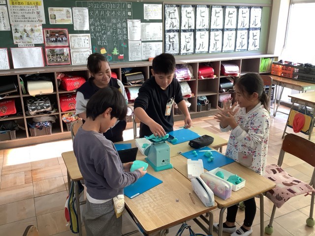 3年生は、理科で「物の重さ」について学習しています。「物は形を変えると重さも変わるのだろうか」という問いを解決するために、100グラムの油粘土を使って実験をしました。友達と一緒に立てた実験計画に沿って、協力して学習を進めることができました。