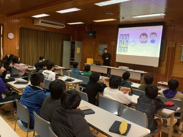 本日、6年生に向けてスクールカウンセラーの田丸先生から「良好な人間関係の築き方」についてお話をしていただきました。メッセージにはプラスのメッセージとマイナスのメッセージがあること、心の中にいる「ユガミン」が出ると心が疲れている可能性があること、メッセージ次第で気持ちの温度計が上がったり下がったりすることなどを教えていただきました。プラスのメッセージをたくさん思い浮かべて、良い気持ちで過ごしたり、友達と接したりできるとよいなと思います。