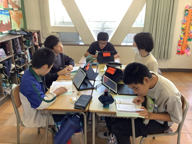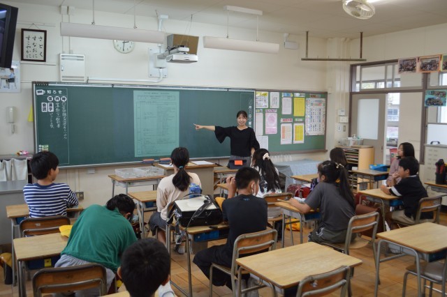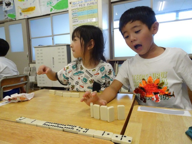 国際交流員のエリ先生をお招きし、国際理解教室を行いました。今回は、「数字」について学習しました。スペイン語の数字を使ったドミノのゲームをしました。グループで「1(ウノ)」「2(ドス)」「3(トレス)」と声をかけながら、楽しくスペイン語を学ぶことができました。