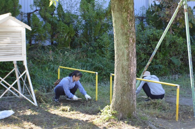 10/17 学校支援ボランティアの皆様に除草作業をしていただきました