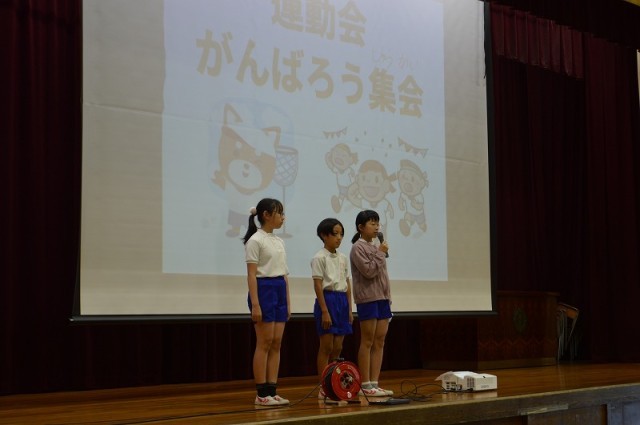 児童会主催で運動会がんばろう集会を行いました。運動会のプログラムと代表児童へのインタビューの動画を視聴したり、かけ声をしたりしました。運動会に向けて、全校児童で気持ちを高めることができました。最後まで笑顔で駆け抜けられるように、星の宮っ子みんなで頑張りましょう。