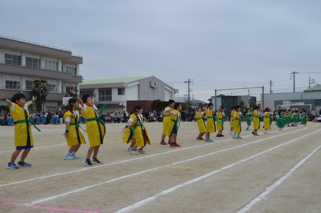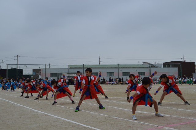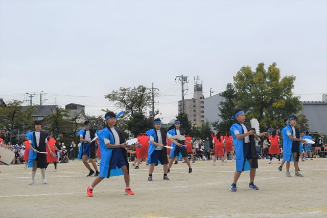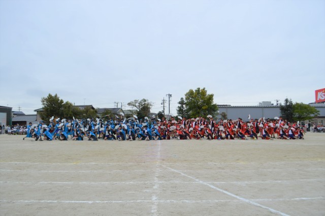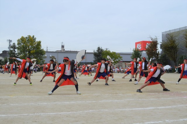 「千本桜」では、鳴子と扇子を使って、美しく、迫力のある演舞を披露することができました。高学年として、運動会のクライマックスにふさわしい演舞でした。