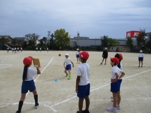 低学年は、徒競走、玉入れ、ダンスを行いました。
