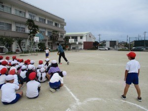 3年生の体育では、ハンドベースボールをしました。ボールを打ったり捕って投げたり、ボールが飛んでくるほうに動いたり、声を掛け合いながら楽しく取り組む姿が見られました。次回にむけて、ワークシートを使って振り返りも行いました。
