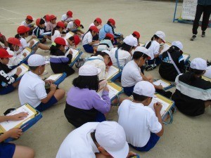 本日、2回目の運動会の全体練習を行いました。開会式の中で行う、入退場、児童宣誓、運動会の歌の練習をしたり、応援合戦の練習をしたりしました。本番に向けて、子どもたちの意欲も高まってきました。