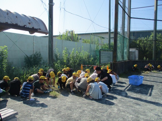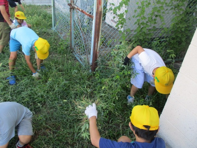今回は、5年生の美化委員が説明をした後、運動場の周りや校舎裏の畑の草取りをしました。夏休み明けで、草が伸びていて大変なところもありましたが、みんなで力を合わせてきれいにすることができました。参加してくださった保護者の皆様、暑い中、ありがとうございました。