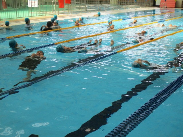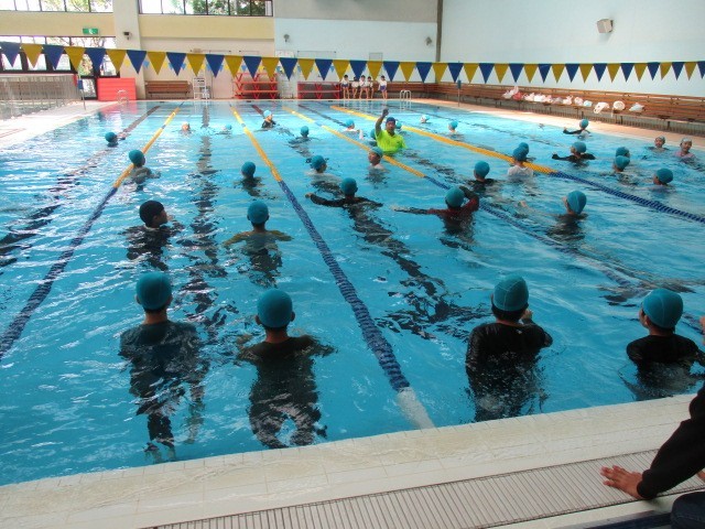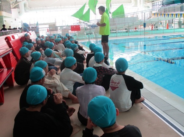 本日の体育では、アルコ清洲の先生に着衣泳について教えていただきました。一番大切なことは浮くことだということで、ポイントを教えていただきながら浮く体験をしました。ペットボトルを使って浮いたり、救助する方法を学んだりもしました。もしもの時に、今回学んだことを生かして命を守れるようにしてほしいと思います。