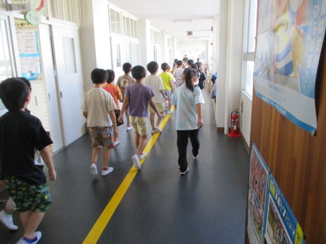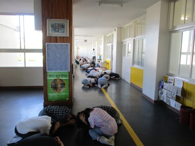 本日、南海トラフ地震を想定した避難訓練を予告なしで行いました。児童達は机の下に避難したりだんごむしのポーズをとったりするなど、それぞれの場所で自身の身の安全を確保しました。その後、先生達が避難経路の安全確認を行った上で、避難先に移動しました。最後にそれぞれのクラスで避難訓練の振り返りに取り組みました。南海トラフ地震をはじめ地震はいつ発生するかわかりません。これを機にご家庭でも南海トラフ地震後の避難等について、話し合っていただければと思います。
