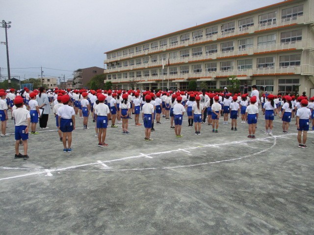 10月25日に行われる運動会に向けて、初めての全体練習を行いました。1回目の練習では、入退場や開会式の動きの確認しました。初めての練習でしたが、子どもたちは真剣な表情で取り組み、全校が一つになっている姿が見られました。本番に向けて、これからさらに練習を重ねていきます。