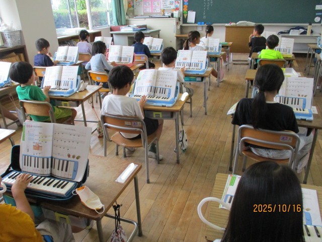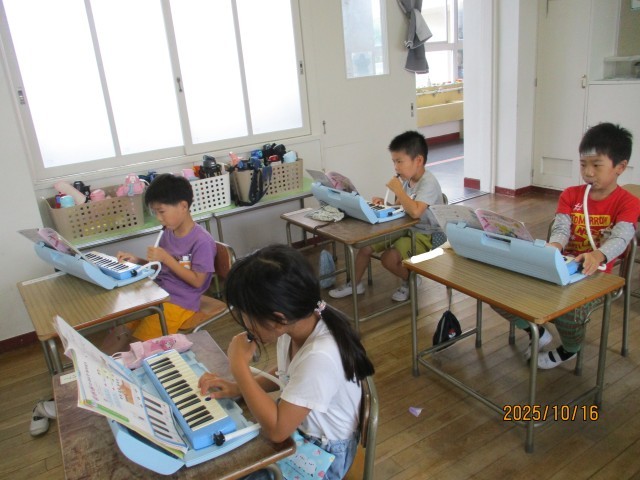 音楽科では、鍵盤ハーモニカの学習が本格的に始まり、タンギングの練習をしたり、運指に気を付けて演奏したりしています。吹ける音が少しずつ増え、さまざまな曲に挑戦することを楽しんでいる様子が伝わってきます。