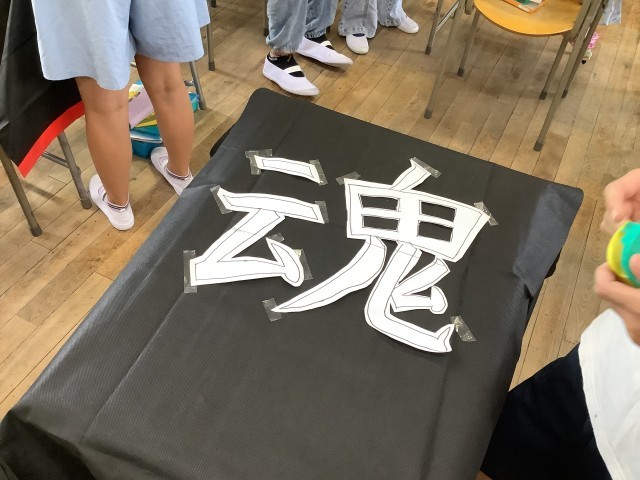 「絆」「魂」「響」などの好きな漢字を描く児童や、つけてもらった大事な名前から一文字をとった児童。