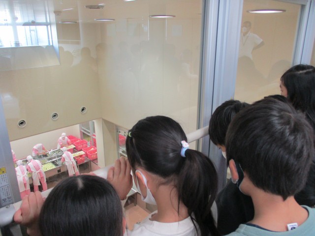 また、普段食べている給食がどのように学校に届いているのか、使い終わった食器がどのように洗われているのか、映像で学びました。