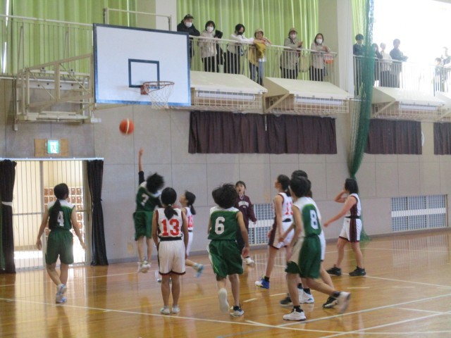 本日バスケ部は桃栄小と試合を行いました。清洲東小は、前半から着実に得点を積み重ね、快勝することができました。チーム全員で精一杯ボールを追いかけたり、応援したりしていました。保護者の皆様には、朝早くの送り出しや応援をしていただき、ありがとうございました。