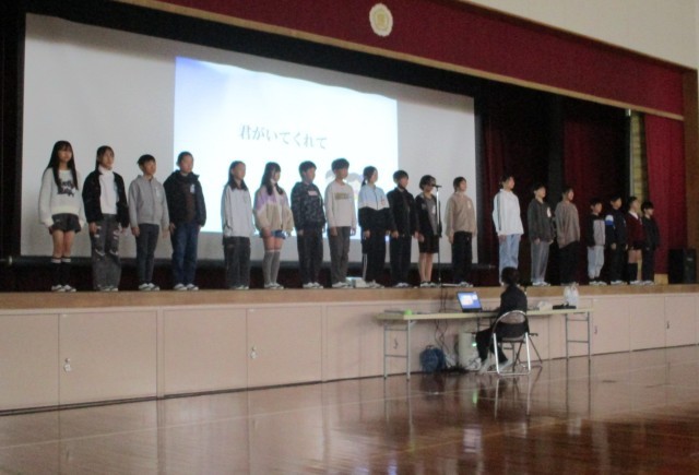 最後に、保健委員会のメンバー全員で創作した詩「君がいてくれて」の群読発表をしました。悩みが少しでも軽減できるように支援していきたいと思います。