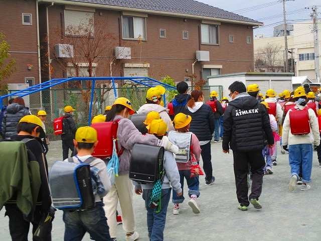 また、今日は集合場所まで職員が付き添う「付添下校」を実施しました。
