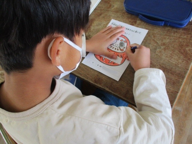 教室に戻ったあと、冬休みの目標をたて、だるまの片目を入れている子もいました。