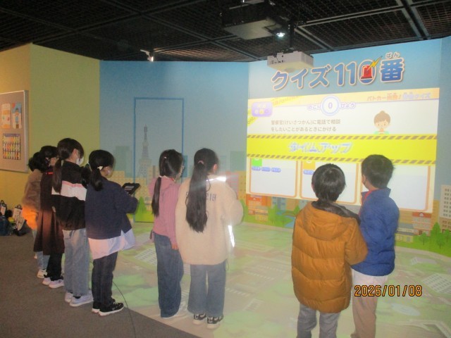 本日、3年1組が愛知県警へ見学に行ってきました。通信指令室や交通管制センターを見学したり、コノハズク広場で体験活動をしたりして、警察の仕事の工夫を知ることができました。また、白バイにまたがったり、タブレット端末を用いたゲームをしたりして、みんなで楽しく学習しました。2組は来週見学に行く予定です。