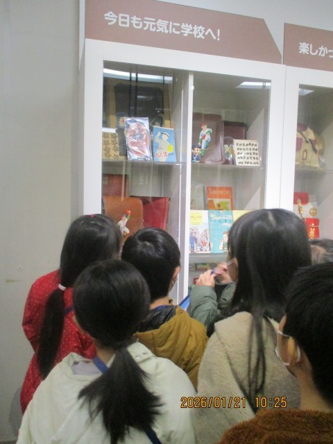 昭和時代の古い道具や街並み、乗り物を実際に見たり、道具の移り変わりについて係の方から説明を聞いたりしました。昔は洗濯板を使って何時間もかけて洗濯をしていたことや、ランドセルが今の物に比べて小さいことを知り、驚きの声が多く上がっていました。