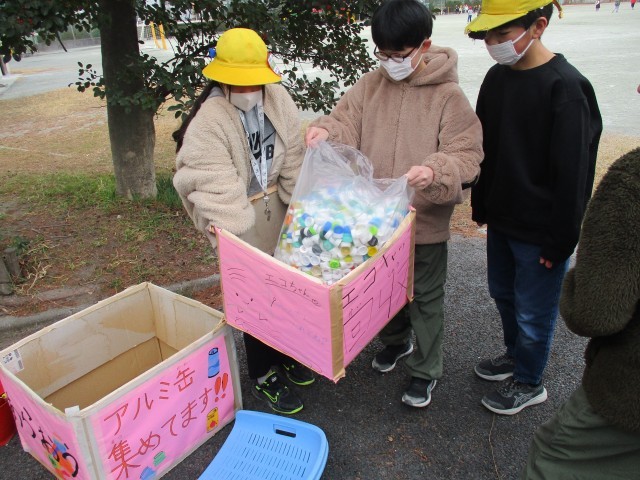 今週水曜日から始まった2月のアルミ缶・エコキャプ回収が今日で最終日でした。後期児童会や代表委員が朝の時間に回収を行いました。ご協力ありがとうございました。