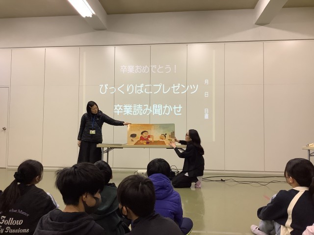 今日は、びっくり箱のみなさんが6年生に向けて「卒業読み聞かせ」をしてくださいました。