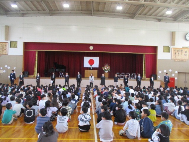 赴任式では、学校を離れた先生との別れにさみしさを抱きつつも、新しい先生たちの挨拶をしっかりと聞き、温かい拍手で迎え入れていました。