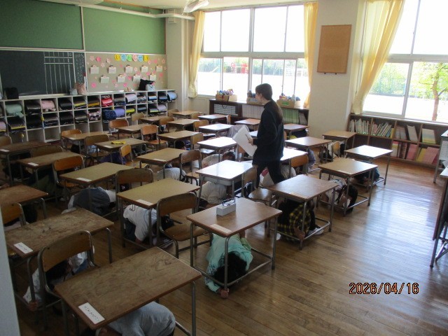 今回は、地震を想定した避難経路の確認と不審者対応時のバリケードづくりをしました。地震を想定した避難訓練では、「おはしも」の約束を守って運動場に素早く移動することができました。教室に戻ってからは、避難訓練の振り返りと不審者対応のバリケードづくりに取り組みました。