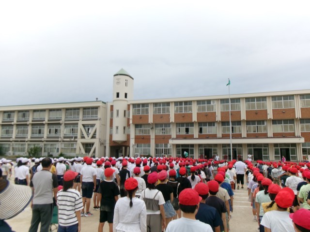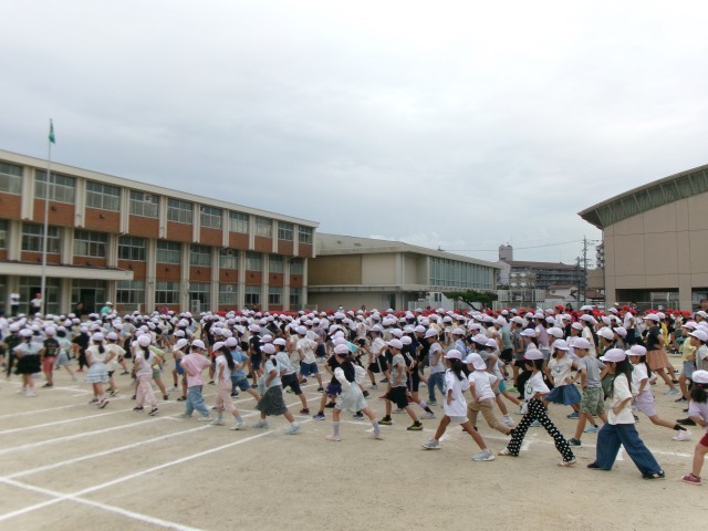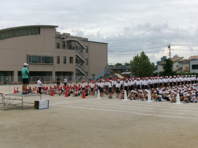 入場行進の位置や、準備体操の確認をしました。練習の中で、何度か6年生が見本を見せる場面がありました。特に行進の見本を見せた時には、手と足を上まで上げて姿勢よく足踏みする姿に自然に拍手が起こっていました。かっこいい上級生の姿を見た他の学年も、立派な行進ができるようになりました。