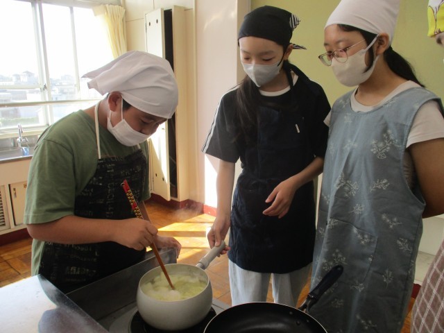 家庭科の授業の一環で、ベーコンポテトをつくりました。