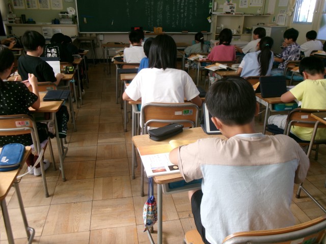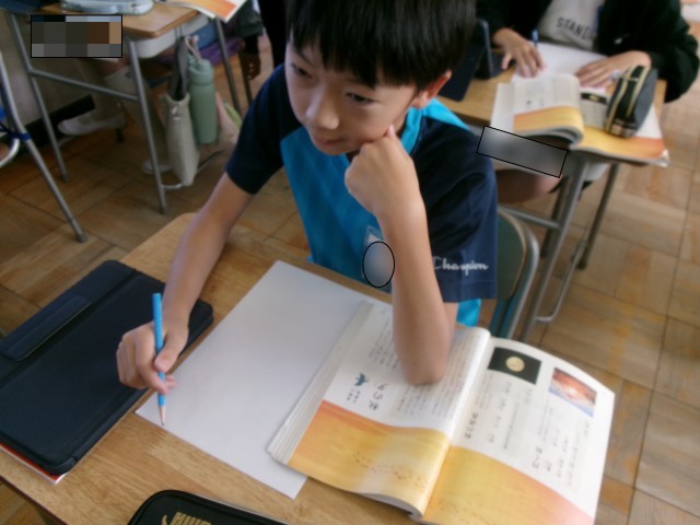 国語の学習で、清少納言の枕草子から、秋に関する部分を題材として、秋の良さを伝える方法を考えました。短歌・俳句・詩のどれかを選び、秋に関する作品を自分で作ることになり、子どもたちは秋らしい言葉を使って文を考えていました。