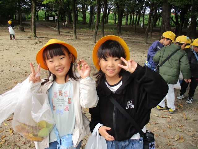 大きなどんぐりや変わった形の葉っぱをたくさん集めることができました。