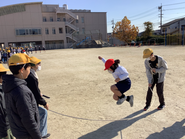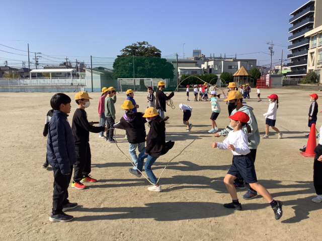 12月1日(月)の大放課にヨッシータイムを行いました。前回と同様、上級生が優しく下級生に声をかけながら活動するなど、あたたかい雰囲気で八の字跳びを行うことができました。今後もヨッシータイムでのふれあいを通して絆を深めていきたいと思います。