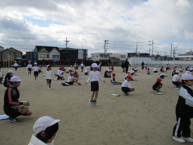 自分で決めた種目を時間いっぱい一生懸命取り組むことができました。八の字跳びでは、連続跳びに挑戦したり、勇気をもって縄に入ろうとする様子に成長を感じられました。