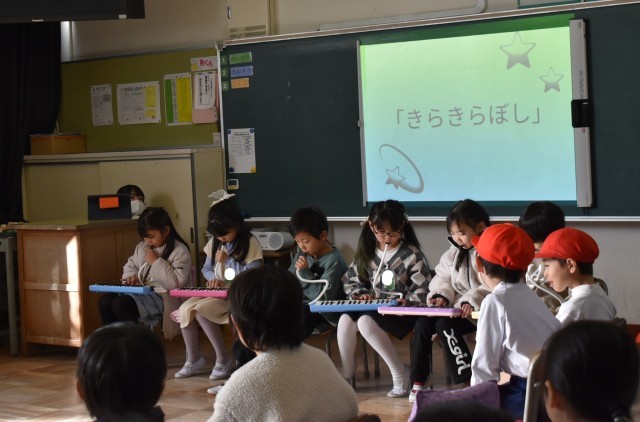 国語、算数、音楽、体育、生活のグループに分かれて、小学校に入学してからできるようになったことを発表しました。それぞれのクラスで、一生懸命に取り組む姿を見せることができたと思います。