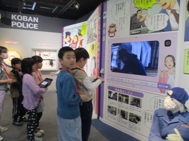 愛知県警察署本部の見学をしました。通信指令室や交通管制センターなど、警察署の中を直接見たり、教科書には載ってないことを警察官の方から聞いたりして、たくさんの学びがありました。また、シュミレーションコーナーやクイズコーナーなどがあり、楽しく学習できました。3年生最後の行事をとても楽しむことができました。