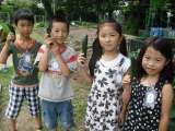 ピカピカの真っ赤なミニトマトやチクチクなが〜いきゅうりをうれしそうに手に取っていました。