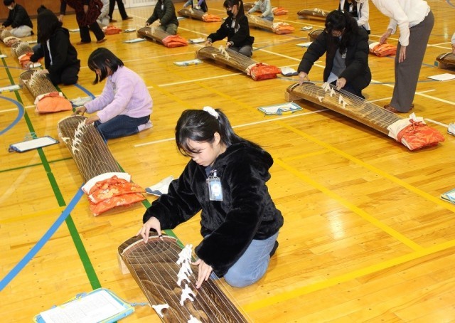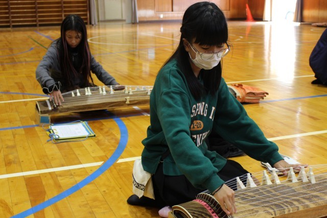 講師の先生に、和楽器である箏の特徴や演奏の仕方を教えていただき、実際に演奏しました。真剣に練習するにつれて徐々にきれいな音が出るようになり、最後は皆で「さくら」を合奏しました。和楽器に親しむ中で、日本文化の良さに気付きました。