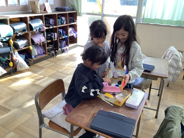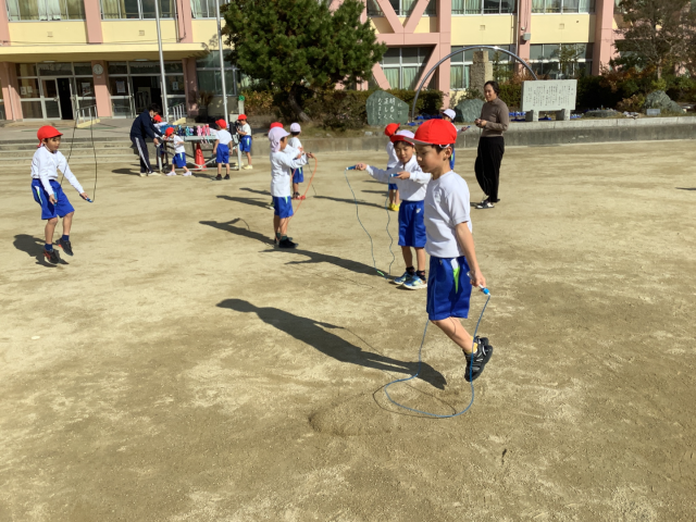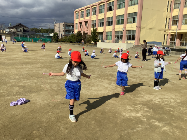 体育では、長縄に続き短縄にも挑戦しています。リズム良く跳ぶことを目標に、前跳び、後ろ跳び、片足跳び、駆け足跳びと少しずつ練習しています。生活科では、秋の植物を使ったおもちゃ作りをし、最後にクラスで遊びました。おもちゃ作りのための材料集めのご協力ありがとうございました。