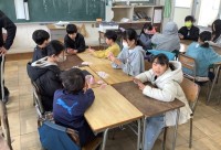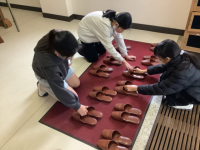 体育館で修了式が行われました。全校を代表して、来年度の児童会長が校長先生から修了証を受け取りました。その後、今年度の成長や頑張りを担任の先生から聞きながら通知表をもらいました。