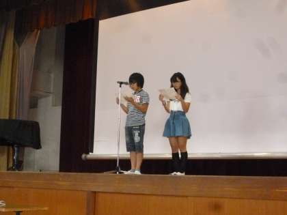 始業式の後、7月29日から31日に行われた青少年赤十字(JRC)リーダーシップトレーニングの活動報告をしました。3日間の研修を受けて、2学期も「気づき、考え、実行する」ことの大切さを改めて感じ、全校児童に伝えました。