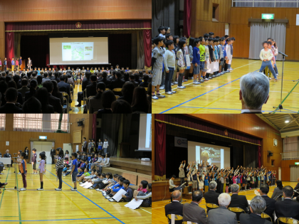 11月16日 JRC発表会(3年生) 公開日 2015/11/18 更新日 2015/11/18 3年生の部屋 3年生は、「生き物を大切にしよう」というテーマで発表しました。日頃の練習の成果を存分に発揮し、上手な演技を行うことができました。今回の学習を通して、生き物のことについての理解を深め、自然を大切にしていこうとする気持ちを深めることができたと思います。 今後も、「気づき」「考え」「行動する」を継続して生活してほしいと思います。