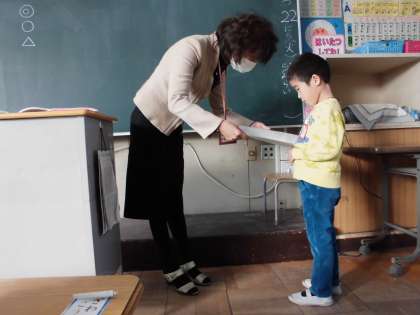 2学期の終業式を行いました。式の前に先日行われたマラソン大会の1位〜10位の児童の表彰がありました。式では、校長先生から2学期を振り返って、一人一人が気持ちの良い挨拶ができたという話を聞きました。また、冬休みの過ごし方については、手伝いを進んですることや安全に気を付けて生活することなどの話を聞きました。教室に戻ると、2学期に頑張ったことを振り返りながら、担任から通知表を受け取りました。