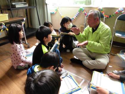 今日は西枇杷島町にお住いの方々を講師にお迎えし、西枇杷島まつりの歴史や昔のくらし・遊びなどについてお話していただきました。子どもたちは、今の生活と比べながら熱心にお話に耳を傾けていました。また、昔の遊びを実際に体験しながら教えていただき、少しずつコツを掴んでいる様子でした。質問にも丁寧に答えていただき、充実した時間を過ごすことができました。