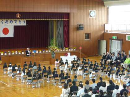 4月6日 入学式 (1年生) 公開日 2017/04/07 更新日 2017/04/07 1年生の部屋 桜が咲く中、入学式が行われました。 お家の方と手をつないで校門をくぐるほほえましい姿が見られました。元気よく「ドキドキドン1年生」を歌い、校長先生のお話をしっかり聞くことができました。清須市からいただいた新しいランドセルを背負って、さあ、楽しい学校生活の始まりです!!