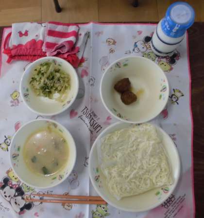 献立は、中華めん・牛乳・とんこつラーメン・肉だんご・中華サラダです。