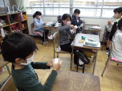 てるてる坊主・運動会延期 公開日 2020/10/17 更新日 2020/10/17 お知らせ 上の写真は、午前6時20分頃の運動場の様子です。運動会を延期しました。 下の写真は、「てるてる坊主」をつくっている様子です。3年生の教室で、児童に「どんな気持ち?」と尋ねると、「残念だけど、21日がある」「3年連続延期になったよ」「3年前は、2回も延期になったよ」「また、がんばる」などでした。そこで、「てるてる坊主」をつくることになりました。